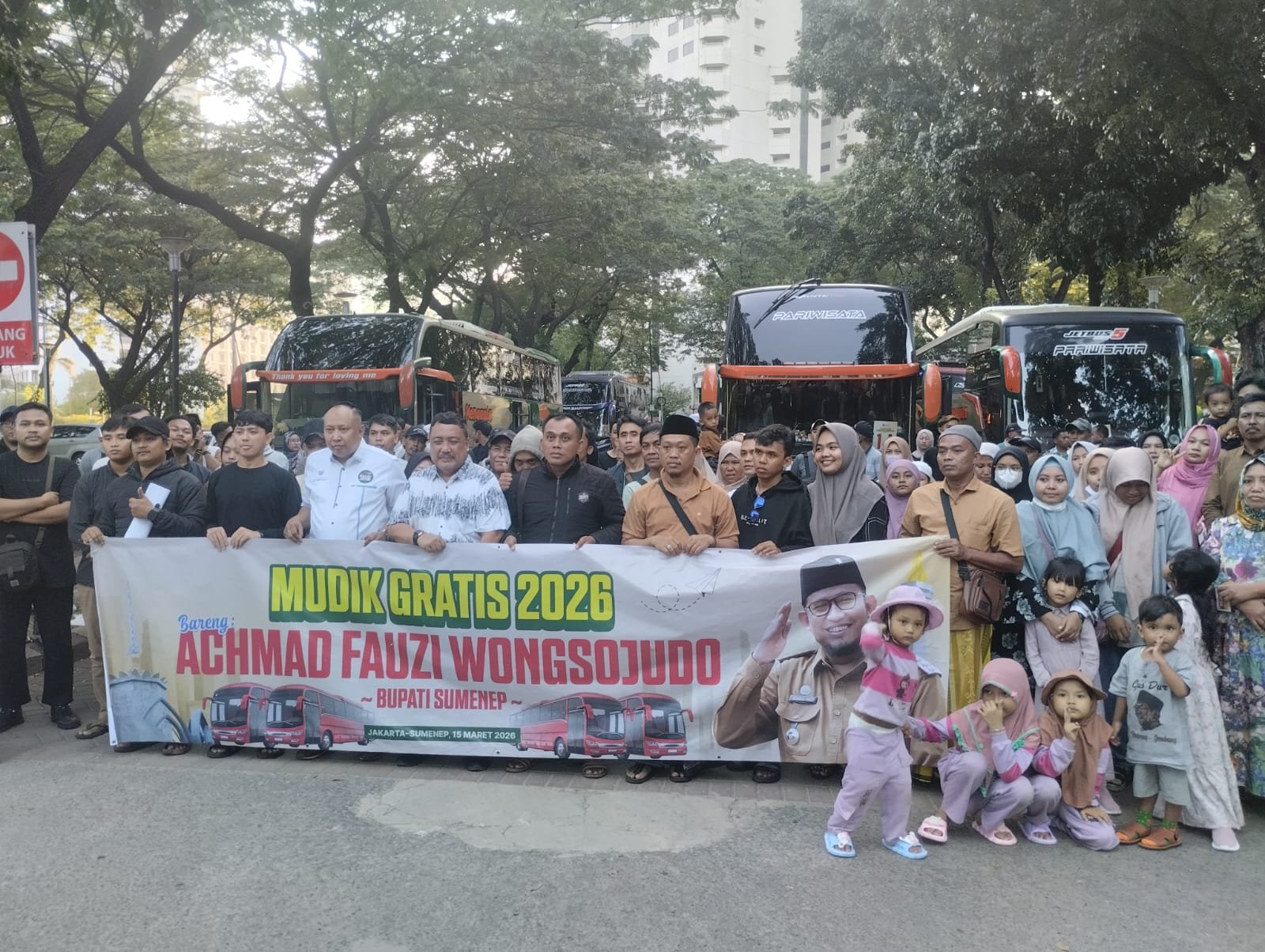 SUMENEP – Rombongan pemudik dari Jakarta hari ini resmi dilepas pulang kampung ke kampung halaman melalui program Mudik Gratis 2026 bareng Bupati Sumenep, Achmad Fauzi Wongsojudo. Pelepasan dilakukan langsung oleh Plt Kepala Disperkimhub Sumenep, Achmad Dzulkarnain, yang mewakili Bupati, memastikan semua persiapan dan keberangkatan berlangsung lancar dan aman.